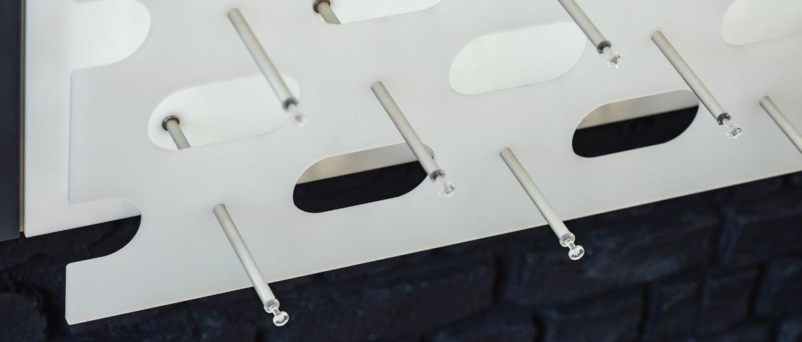 Acrylpaneel ist in zwei Standardgrößen erhältlich, mit möglicher Ausführung nach technischer Spezifizierung des Kunden. Die bügelstützenden Löcher sind auch nach Anforderungen des Projekts anpassbar. Das Paneel ist in mehreren Farben erhältlich, auch mit optionaler Anwendung von dekorativen Folien oder UV-Direktdruck. Einfache Wandmontage.